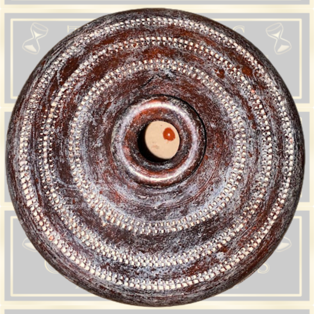 This distinguished Khmer-style honey pot exemplifies traditional Cambodian stoneware craftsmanship. The compressed, robust form showcases characteristic patterning rings beneath a rich brown glaze that deepens with age. Crafted from substantial, heavy clay, the vessel demonstrates the durability expected of functional antique pottery. Minor glaze variations along the rim and sides reflect authentic aging and handling over time, adding to its historical character. A refined addition for collectors of Southeast Asian ceramics.
