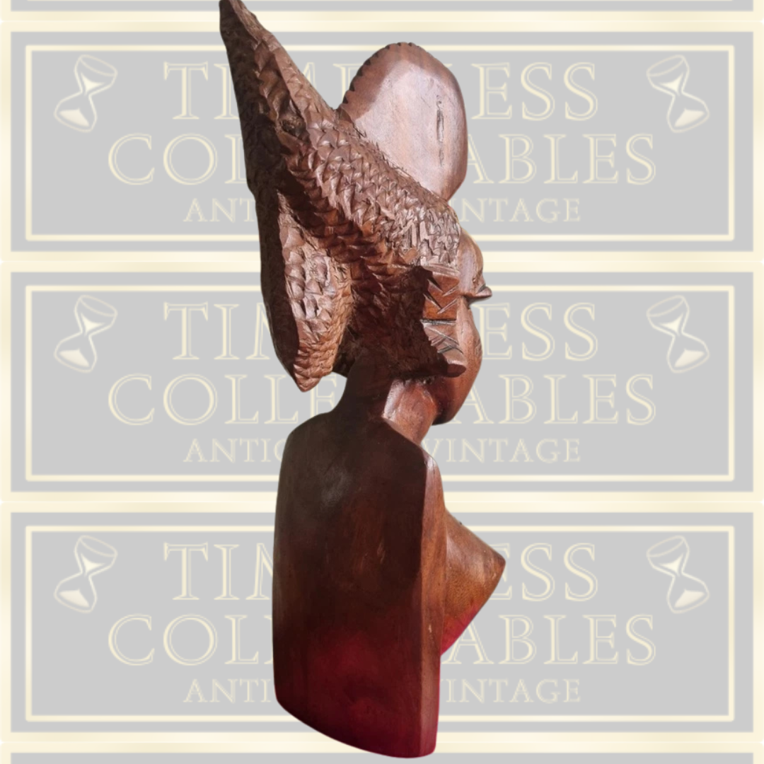 This is a handcrafted African wooden bust, likely depicting a Fulani woman.