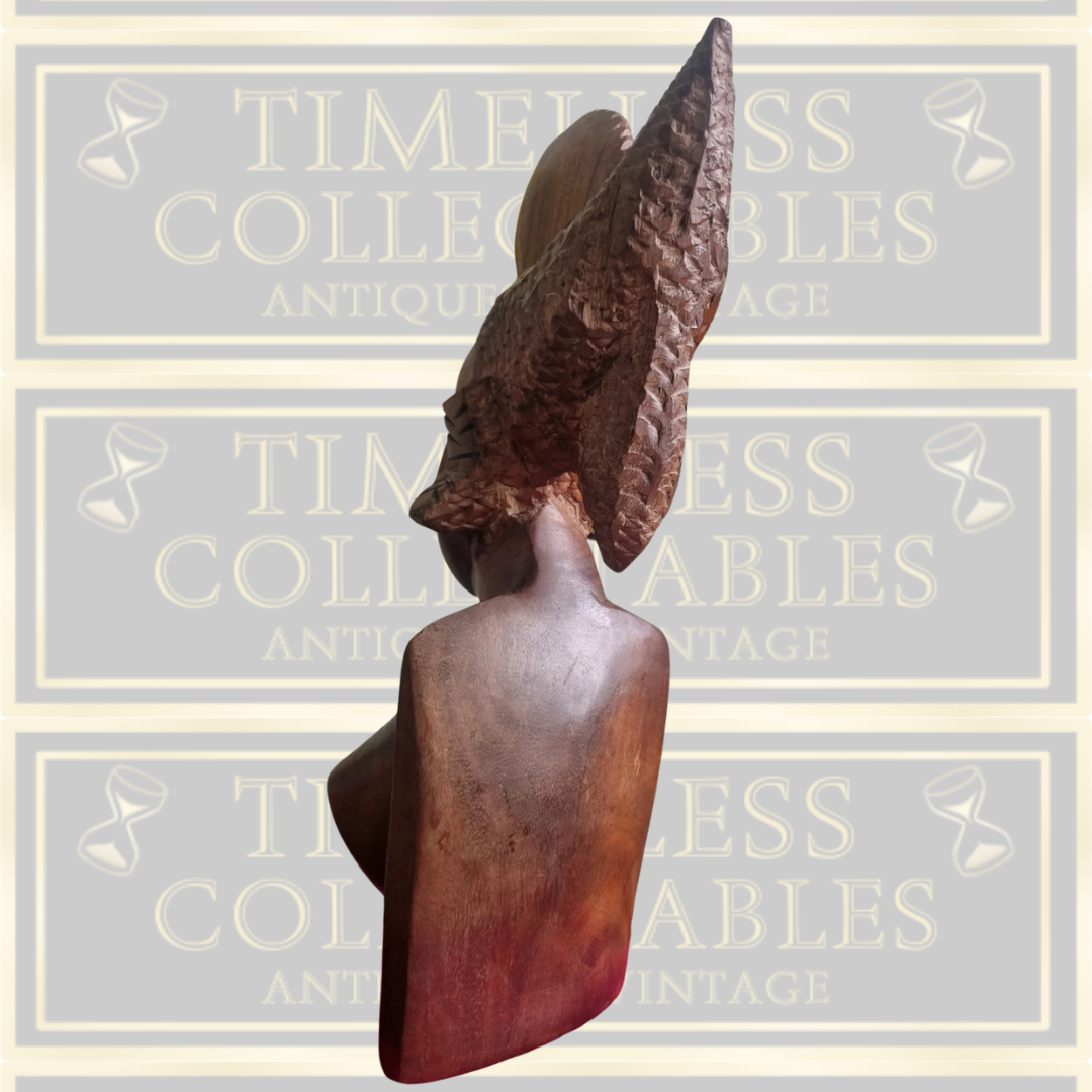 These sculptures are often hand-carved by skilled artisans in countries like The Gambia or Mali in West Africa. Typically crafted from reclaimed or dark woods, such as mahogany or ebony. Features intricate details capturing the beauty and grace of the female form, often with distinctive hairstyles or facial markings. Represents a vintage or tribal aesthetic, reflecting African art and culture. Often considered unique pieces of art, adding a distinctive touch to a collection or home decor.