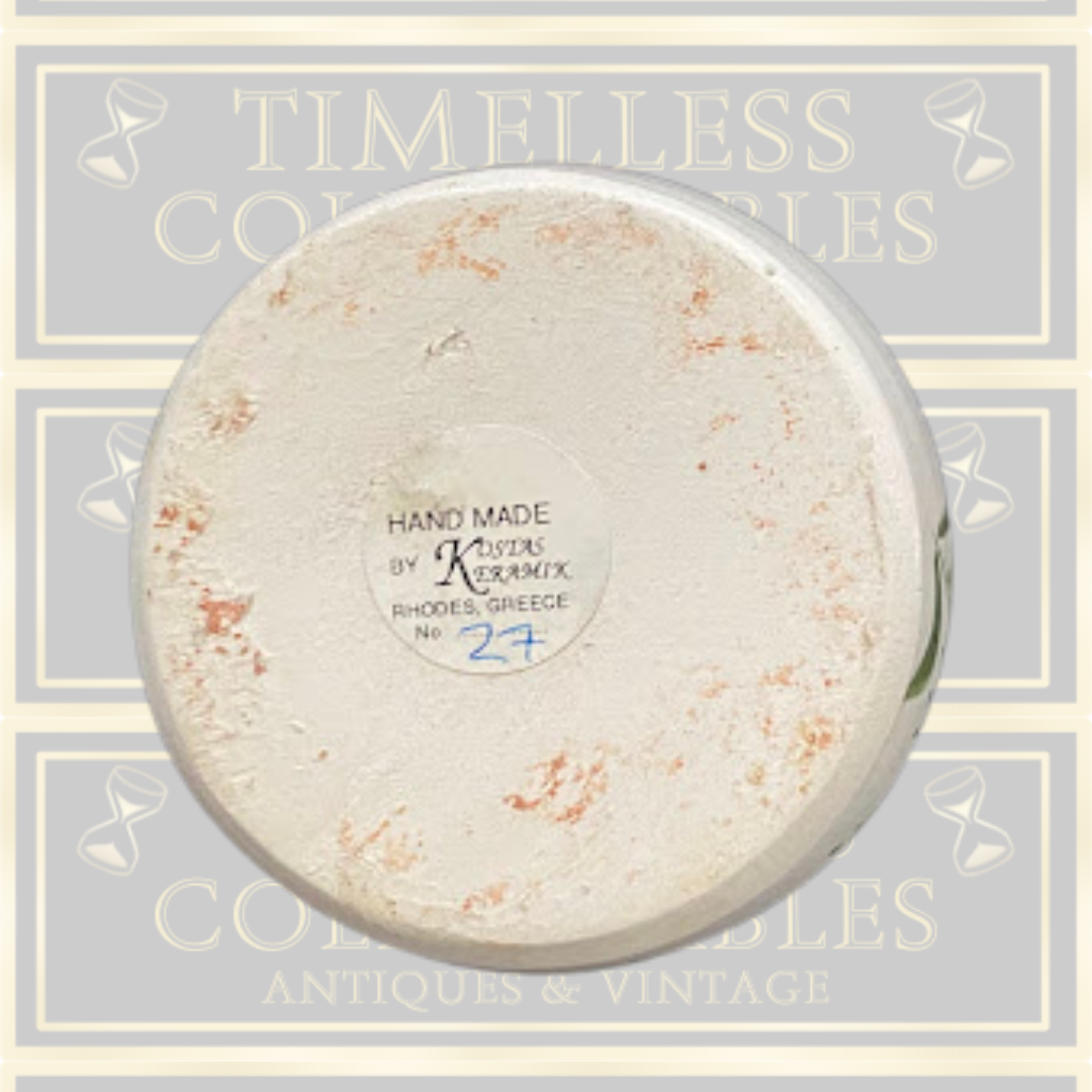 This studio pottery piece, handcrafted in Rhodes, Greece, showcases a delicate butterfly and floral design that captures the essence of Mediterranean artistry. Each item is meticulously shaped and painted by skilled artisans, ensuring a unique and authentic creation. Perfect for collectors and connoisseurs, this pottery combines traditional techniques with natural motifs, making it a timeless addition to any collection or home décor.