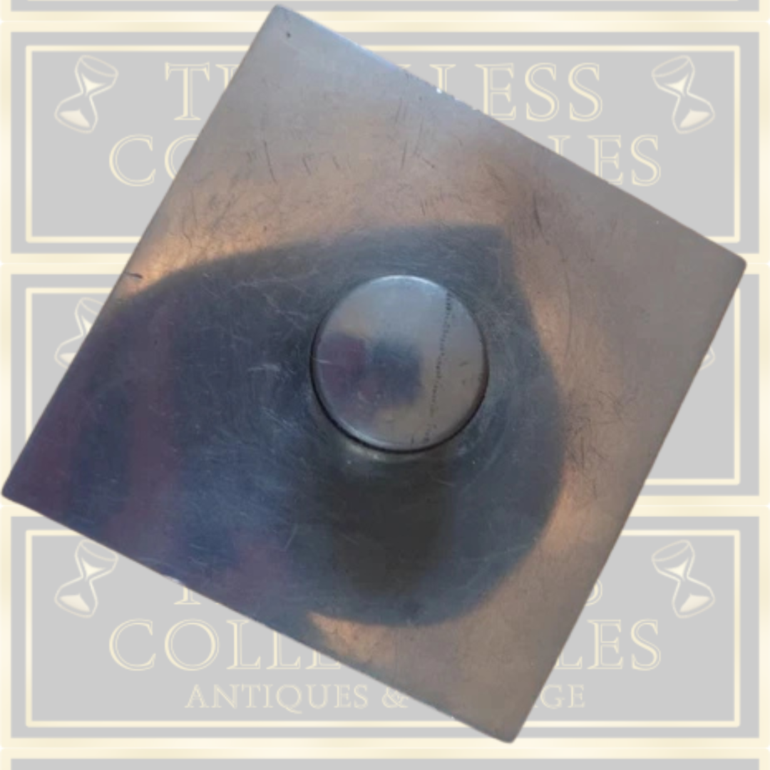 This striking Art Deco flask showcases Troika's distinctive cubic design, crafted in a silver metal with an authentic patina that reflects its vintage heritage. The geometric form exemplifies the modernist aesthetic of the era, making it as much a sculptural accent piece as a functional collectible. Surface wear consistent with age adds character and provenance to this refined metalwork,