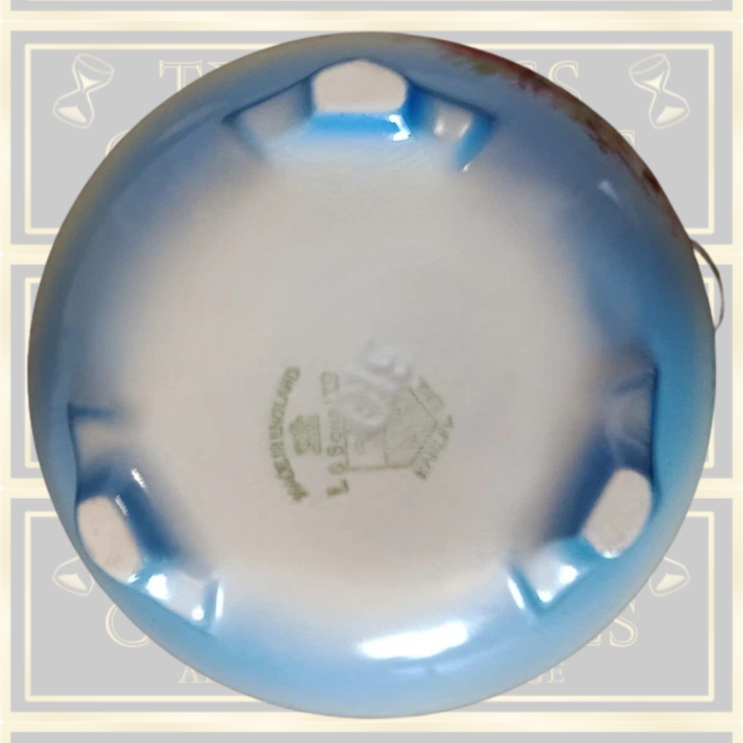 This exquisite biscuit barrel from Lancaster and Sons Ltd showcases fine ceramic craftsmanship with a silver-plated lid and handle. Loverly hand painted floral. It remains in good overall condition, with a clean interior. While the lid has developed natural tarnishing over time, the handle remains firmly attached and secure.