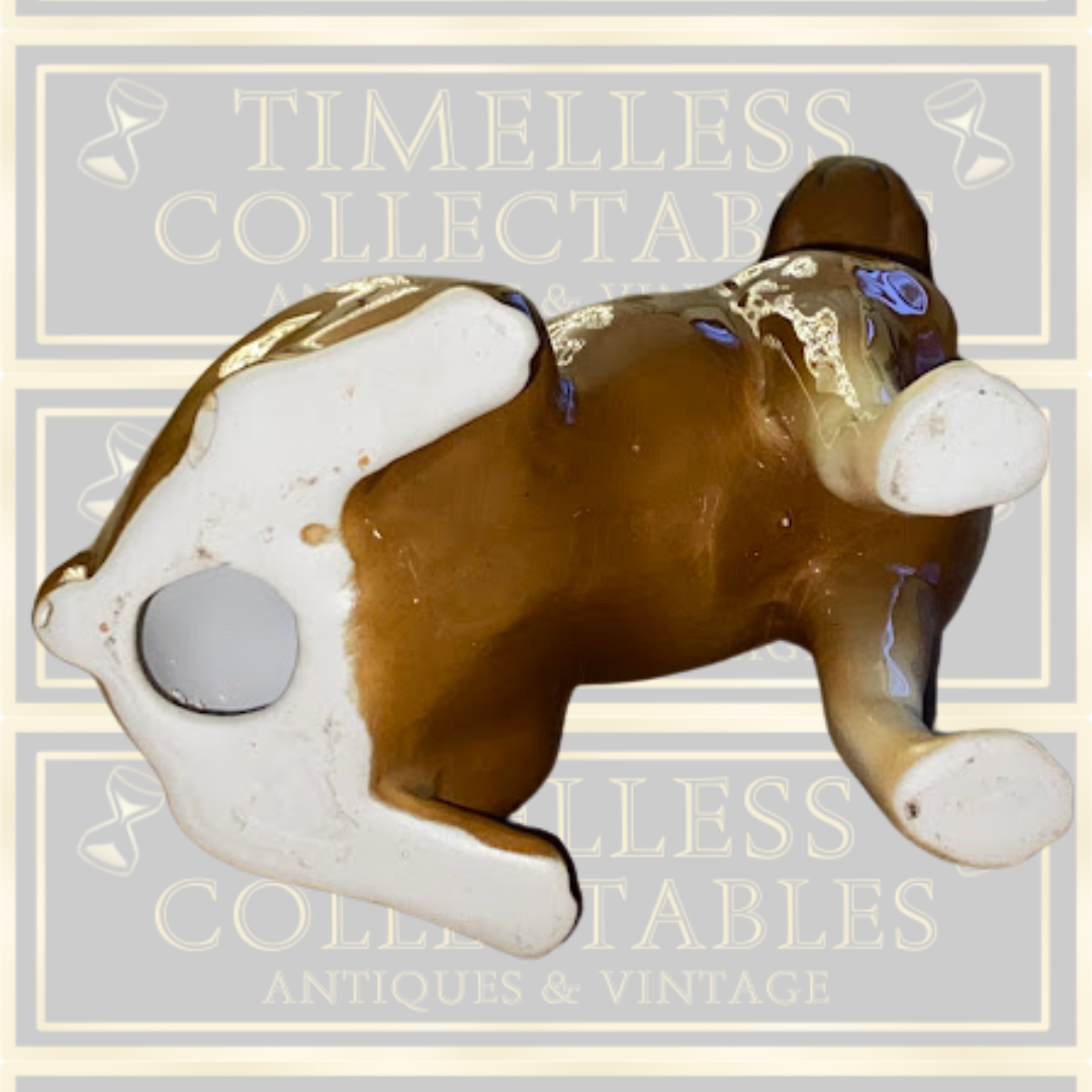 Vintage 1960s ceramic figurine depicting a seated boxer dog, standing 21cm in height. This well-preserved example showcases the craftsmanship characteristic of mid-century pottery, with meticulous attention to the breed's distinctive features. The piece remains free from damage, presenting an excellent condition specimen for the discerning collector.Not stamped anywhere. Ideal for those assembling curated collections of vintage animal figurines or breed-specific memorabilia,
