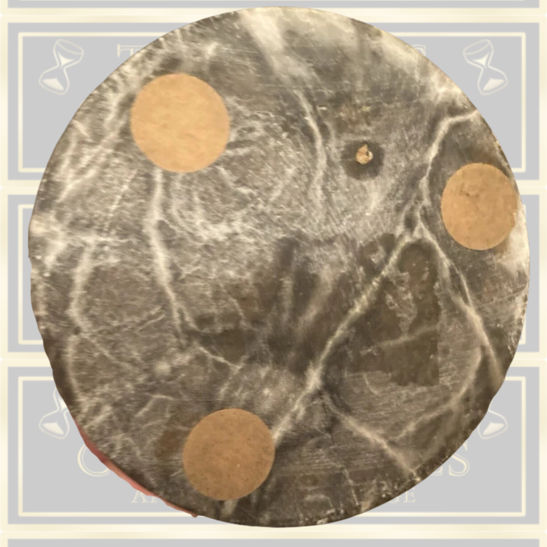 This vintage cold cast figurine depicts a fashionable lady with a terrier dog, standing 33 cm tall and 11 cm in diameter at the marble base. Accented with striking red and gold details, this distinctive piece is preserved in good condition.