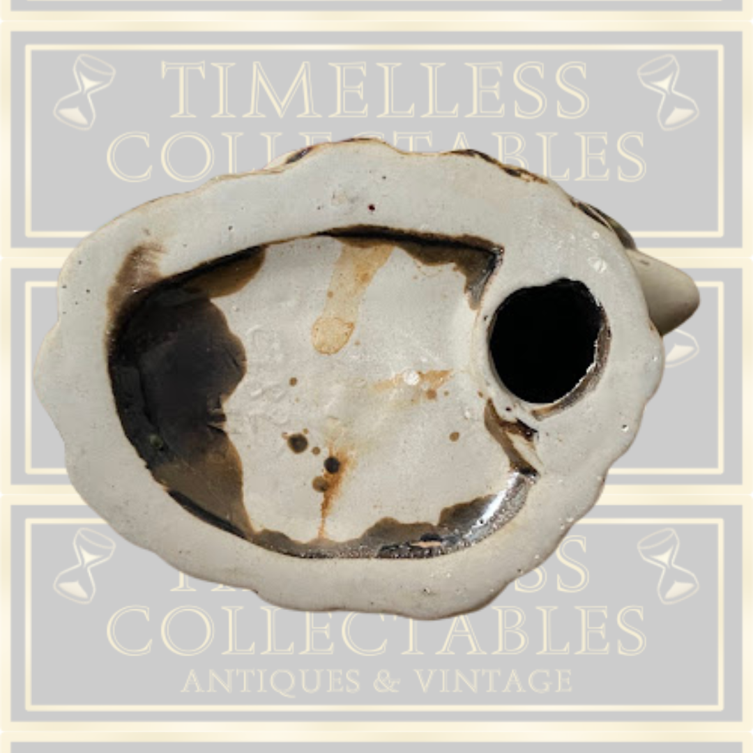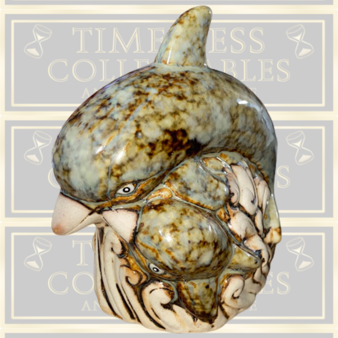 This vintage bisque and porcelain piece features dolphins in mid-leap. Its distinctive half-porcelain, Although marked with numbers on the base, the exact origin is unclear, though it may be West German. The item remains in excellent condition.