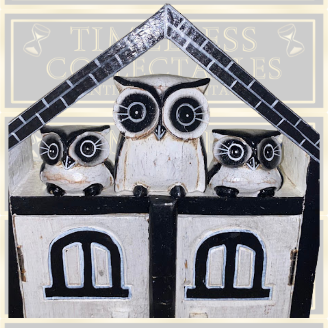 This handcrafted wooden key holder features five intricately carved owls perched on a rustic barn structure with functional opening doors for convenient key storage. Each piece reflects authentic folk art craftsmanship and fair trade principles, bringing both practical organisation and decorative charm to your entryway or living space. Owls symbolise wisdom and protection, making this a meaningful addition to any home.