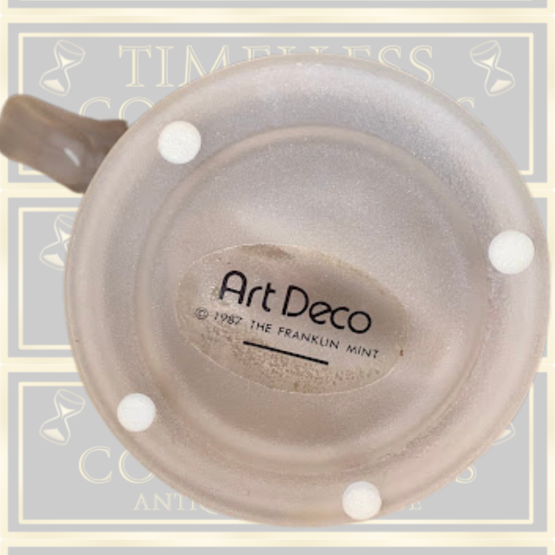 Art Deco glass horse sculpture from The Franklin Mint exemplifies mid-century collectible craftsmanship. Rendered in frosted glass and standing 5-1/4" tall, the piece showcases the refined aesthetic hallmarks of the era. Dating to 1987, it remains in excellent condition with pristine surfaces—unmarred by chips or scratches. Very decorative glass art