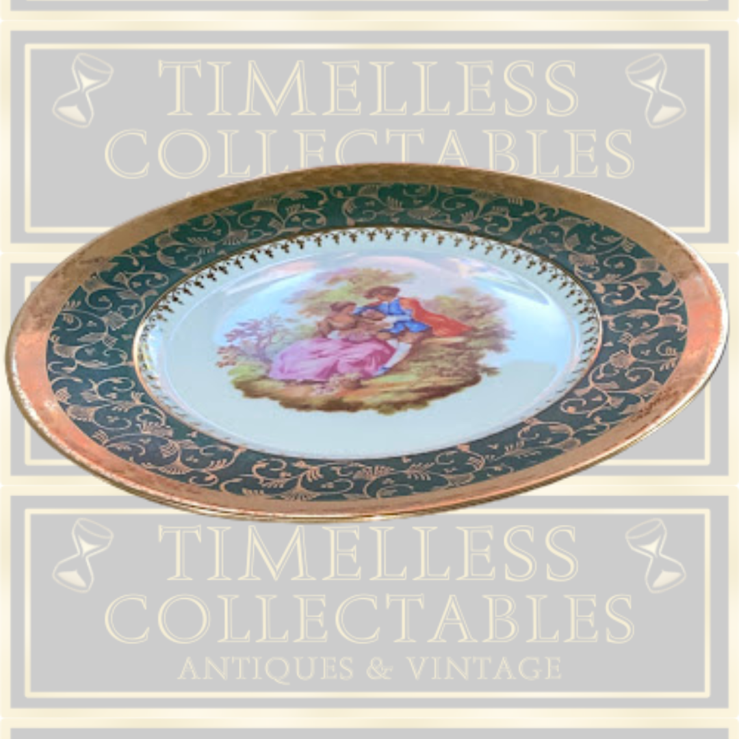 Exquisite Limoges side plate featuring green and gold porcelain with a gold-plated Fragonard design. Marked on the reverse with Meissner Limoges France. Beautiful looking display plate.