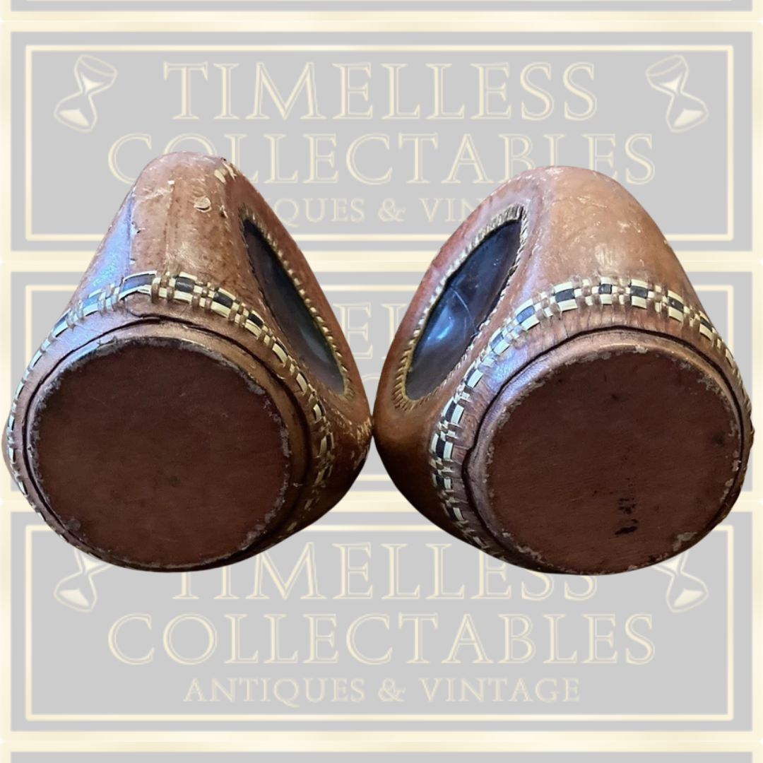 Vintage Pair Leather And Glass Bottles With Stoppers