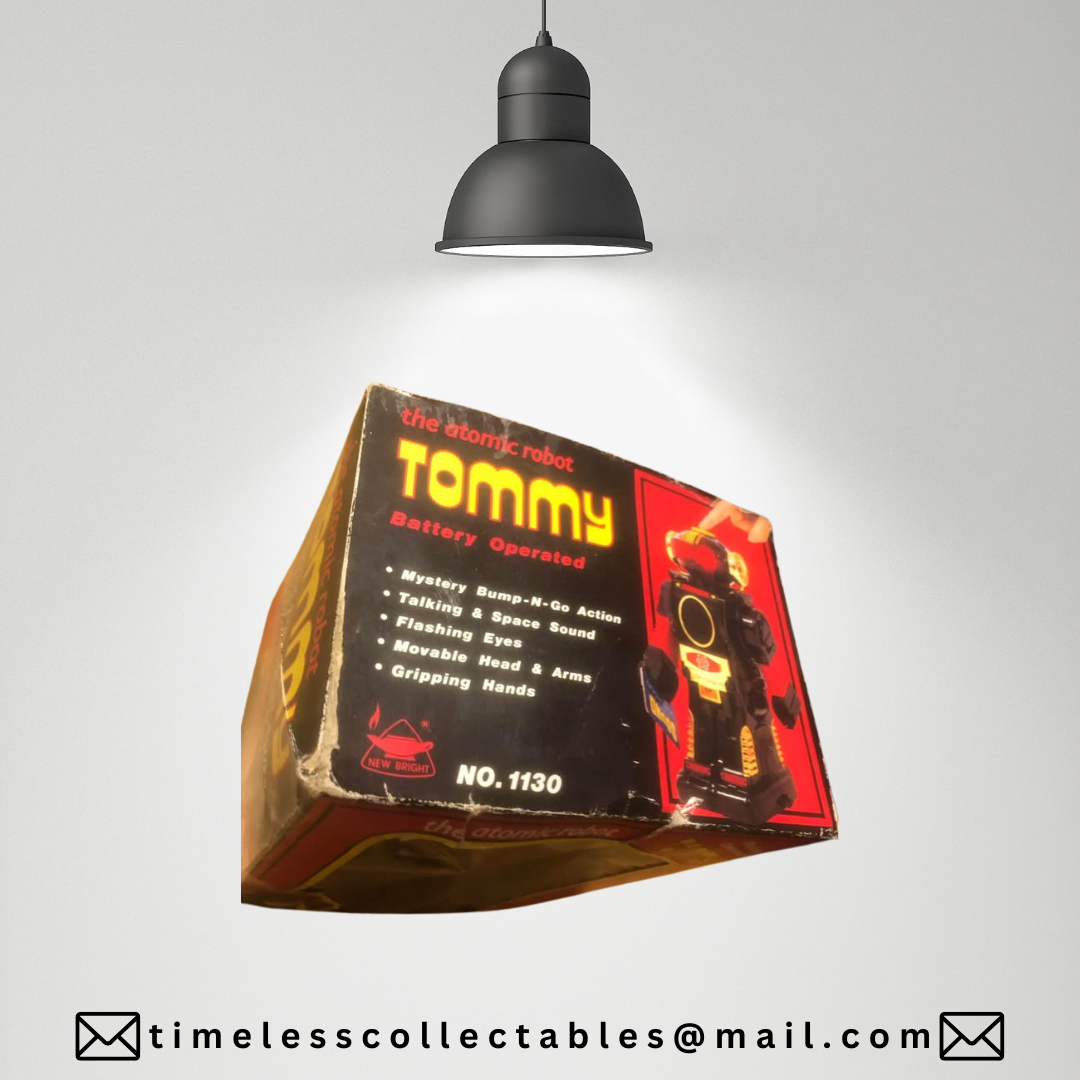 Discover the Vintage Tommy The Atomic Robot, a remarkable collectible that stands out for its exceptional condition despite its age. This iconic robot, complete with its original box, represents a significant piece of toy history, cherished by enthusiasts and collectors alike. Its well-preserved state enhances its value, making it a rare find for those passionate about vintage robotics and atomic-era memorabilia. Perfect for display or as a centerpiece in any collection, this Tommy robot offers both nostalgic charm and expert appeal. Secure this timeless treasure to enrich your collection with a piece that truly embodies the spirit of its era.